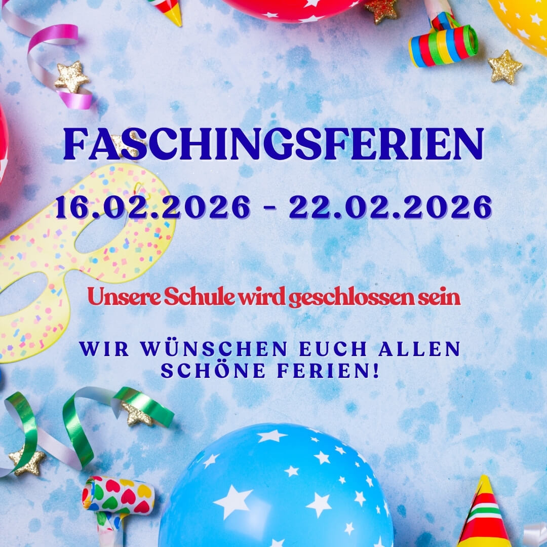 Faschingsferien ! Liebe Freunde, unsere Schule ist während der Faschingsferien vom 16. Februar bis zum 22. Februar geschlossen. Wir wünschen Ihnen eine erholsame Zeit 🦄🧚♀️ Liebe Grüße CDC Team ♥️